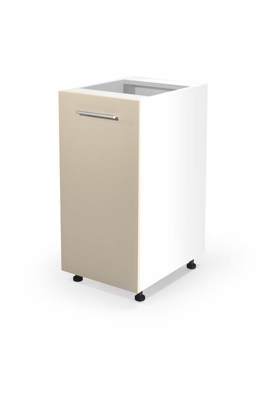 Spodní skříňka do kuchyně ze sektorového systému VENTO o rozměru 40 x 52 x 82 cm. Korpus skříně je vyroben z laminované dřevotřískové desky, přední strana je pak z foliované MDF desky. Skříňka disponuje mechanismem měkkého dovírání pomocí plynových pístů. Vnitřek skřínky tvoří 2 poličky. Kvalitní a praktické kuchyňské skříňky jsou vhodné do každé kuchyně a dokonale využijí každý část prostoru. Kuchyňské skříňky pro kuchyňskou linku bychom mohli rozdělit na tři základní typy skříněk: spodní kuchyňské skříňky, horní kuchyňské skříňky a rohové kuchyňské skříňky. Správnou kombinací těchto typů skříněk si dokážete vytvořit kuchyň podle vašich představ. Skříňka je dodávána bez pracovní desky.