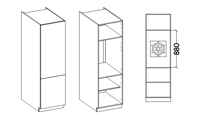 Skříňka je určená pouze na vestavnou lednici, maximální výška lednice může být 1780 mm.