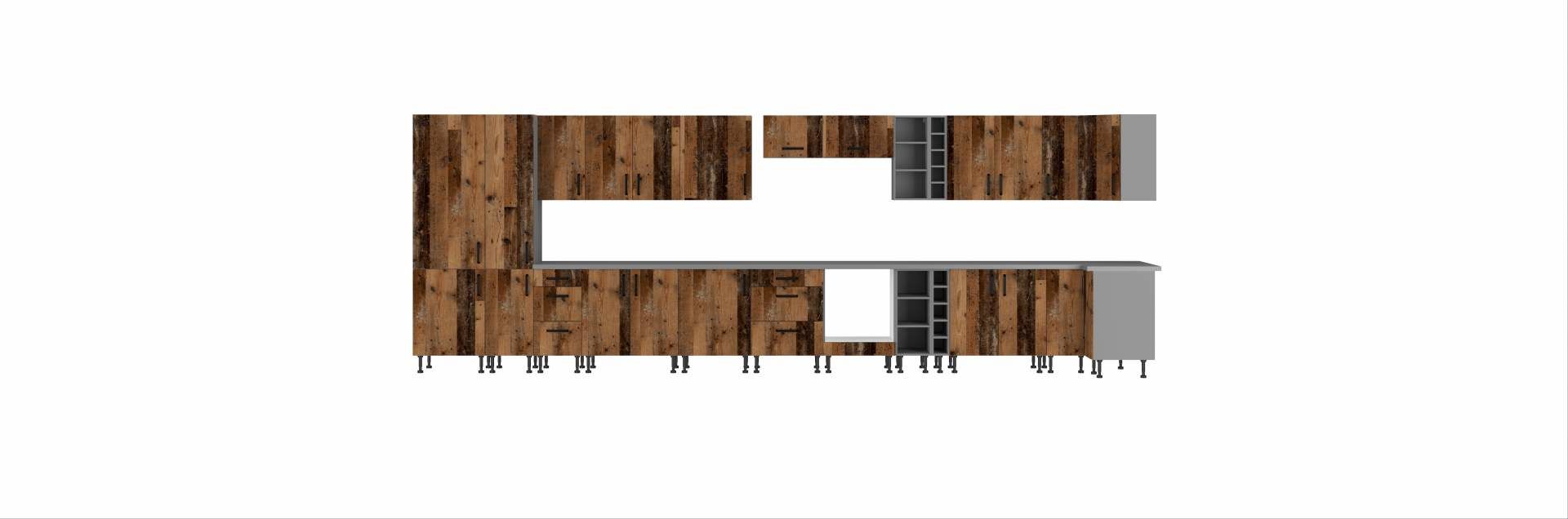 Kuchyňská linka ze systému OLDSTYLLE - dvířka skříněk jsou vyrobeny z MDF v dekoru old style v kombinaci s korpusem v antracitu. Systém tichého dovíraní dvířek a zásuvek. Z modelové řady OLDSTYLLE lze sestavit kuchyňskou linku na míru vašemu interiéru.