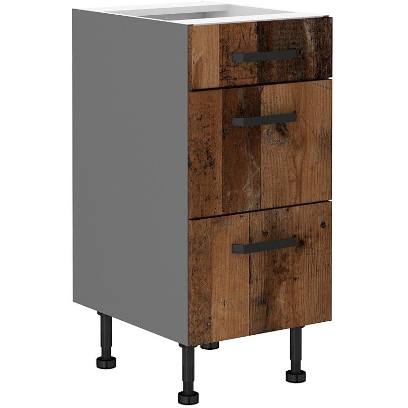 Spodní šuplíková skříňka ze systému OLDSTYLLE- skříňka do kuchyňské linky je uzavíratelná praktickými šuplíky s kovovým úchytem. Šuplíky skříněk jsou vyrobeny v provedení dekoru oldstyle v kombinaci s korpusem v anntracitové barvě. Kvalitní kování PREMIUM BOX.