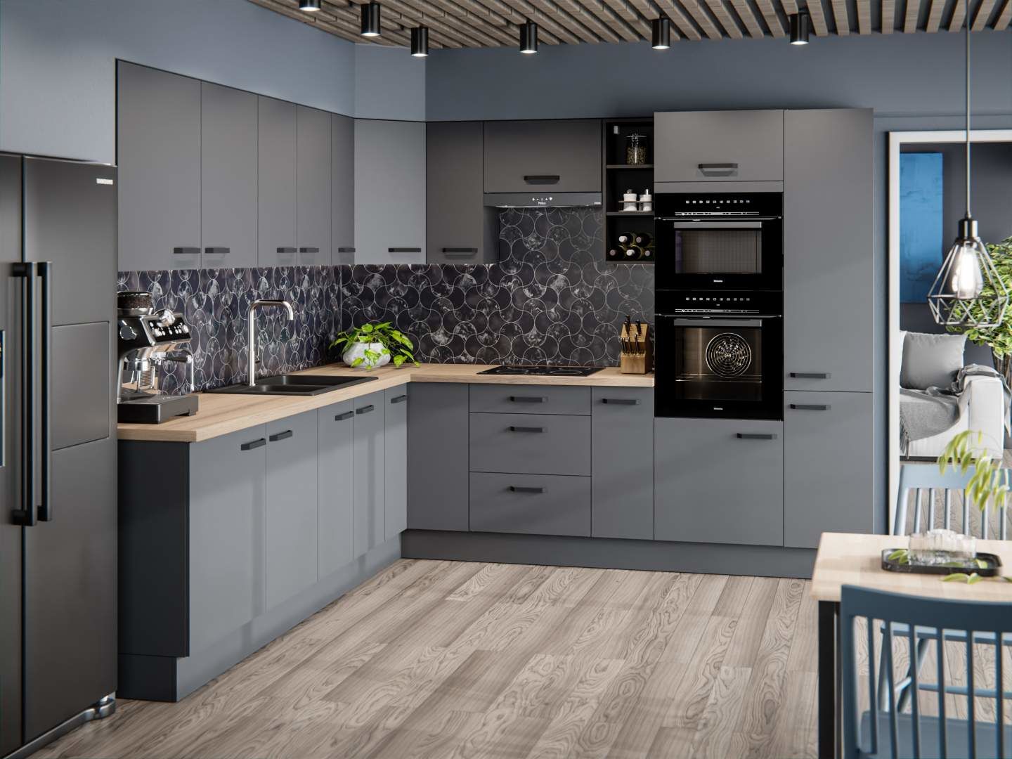 Pracovní deska a spotřebiče nejsou součástí. Pracovní desku lze objednat v dekorech z naší aktuální nabídky.