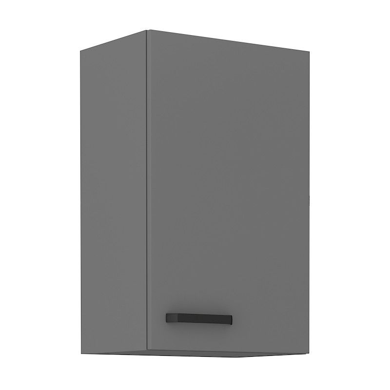 Horní otevírací skříňka ze systému NESA - skříňka do kuchyňské linky je uzavíratelná praktickými dvířky s kovovým úchytem. Dvířka skříněk jsou vyrobeny v antracitové barvě s korpusem také v antracitové barvě.