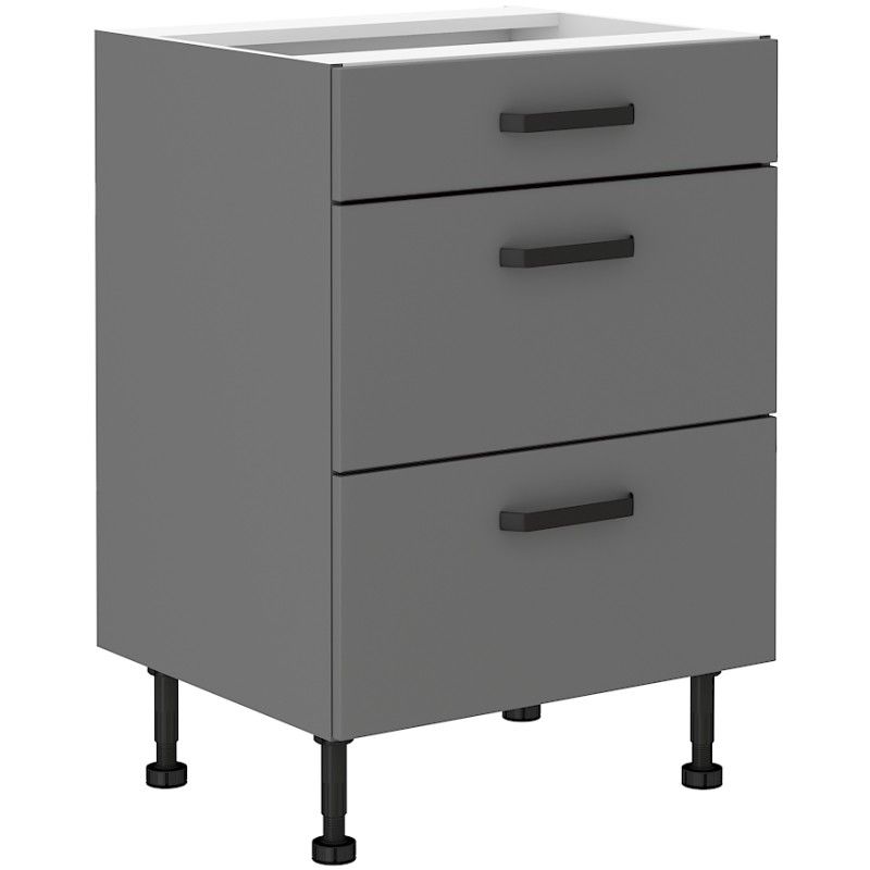 Spodní šuplíková skříňka ze systému NESA - skříňka do kuchyňské linky je uzavíratelná praktickými šuplíky s kovovým úchytem. Šuplíky skříněk jsou vyrobeny v antracitové barvě s korpusem také antracitové barvě. Kvalitní kování PREMIUM BOX.