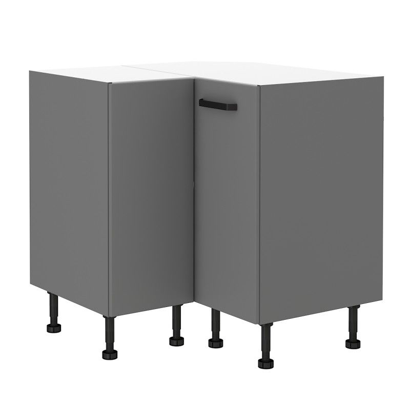 Spodní rohová skříňka ze systému NESA- rohová skříňka do kuchyňské linky je uzavíratelná praktickými dvířky s kovovými úchyty. Dvířka skříněk jsou vyrobeny v antracitové barvě a korpus je take v antracitové barvě.