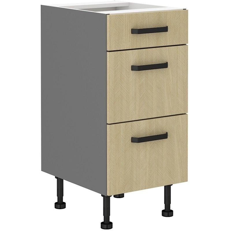 Spodní šuplíková skříňka ze systému SCANDY - skříňka do kuchyňské linky je uzavíratelná praktickými šuplíky s kovovým úchytem. Šuplíky skříněk jsou vyrobeny v dekoru jedle scandi s korpusem antracitové barvě. Kvalitní kování PREMIUM BOX.