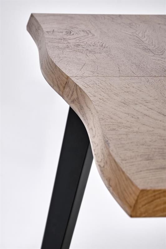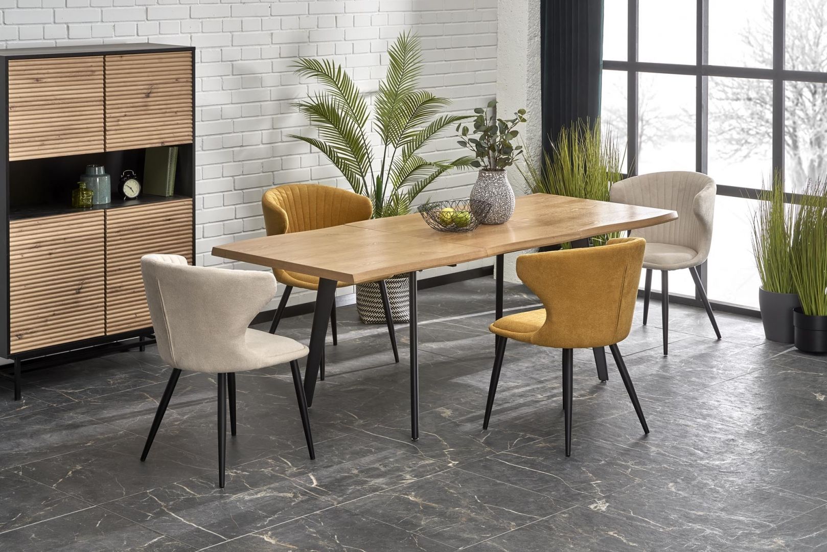 Jídelní stůl rozkládací DICKSON 2 - je moderní jídelní stůl vyrobený z lakované MDF desky + přírodní dýha v barvě dub přírodní a designové nohy z černé lakované oceli. Stůl je vhodný do moderní jídelny.