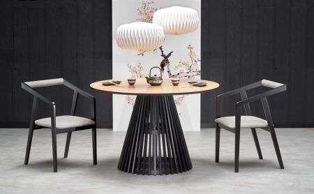 Jídelní stůl LOPEZ - je moderní stůl vyrobený z MADF, přírodní dýhy a masivního dřeva v barevném dekoru: dub přírodní.