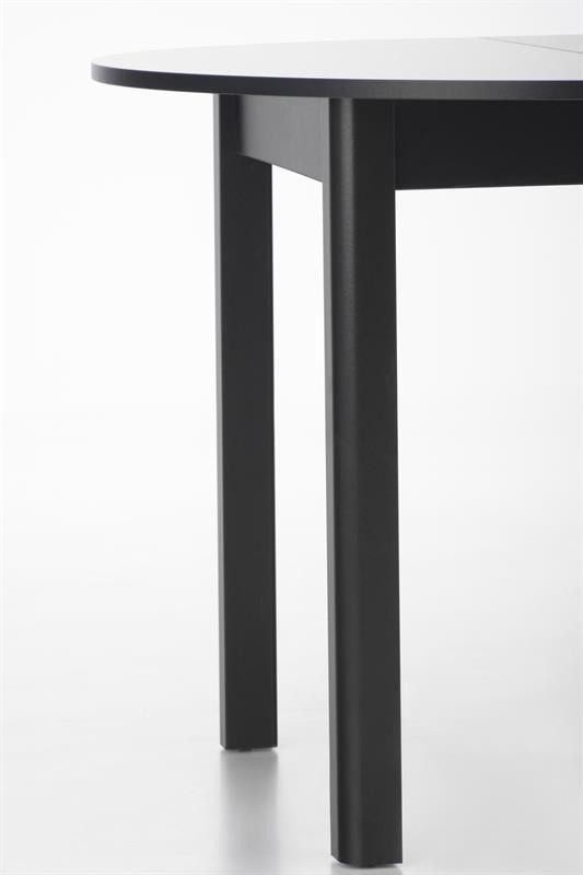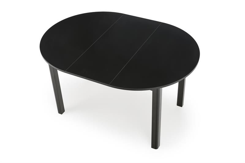 Jídelní stůl RINGO dčerná - je moderní kulatý stůl vyrobený z laminované MDF desky a přírodní dýhy v barevném provedení černá. Nohy stolu jsou v klasickém černém provedení. Jídelní stůl je rozkládací a hodí se do každého interiéru.