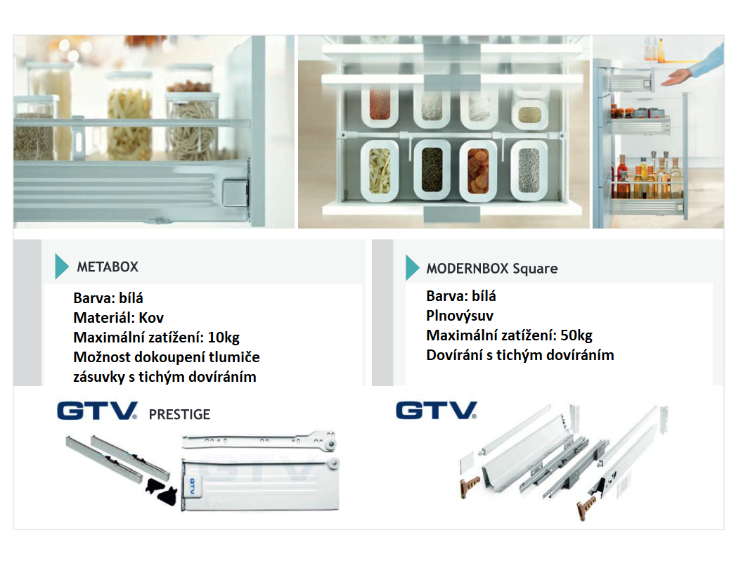 dorazové kování BLUM METABOX, MODERNBOX Square, nebo TANDEMBOX Antaro za příplatek