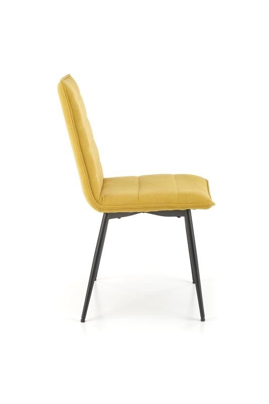 Jídelní židle K493 - je elegantní židle vyrobena v kombinaci lakované oceli a sedáku vyrobeného v šedé, béžové a hořčicové látce.