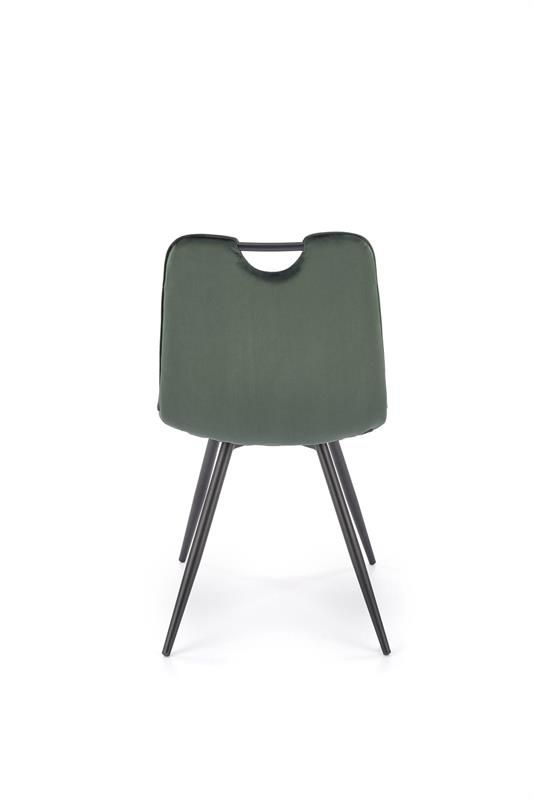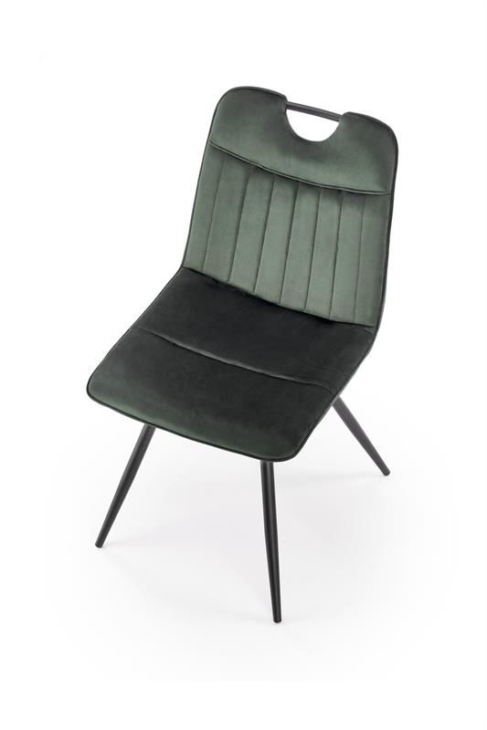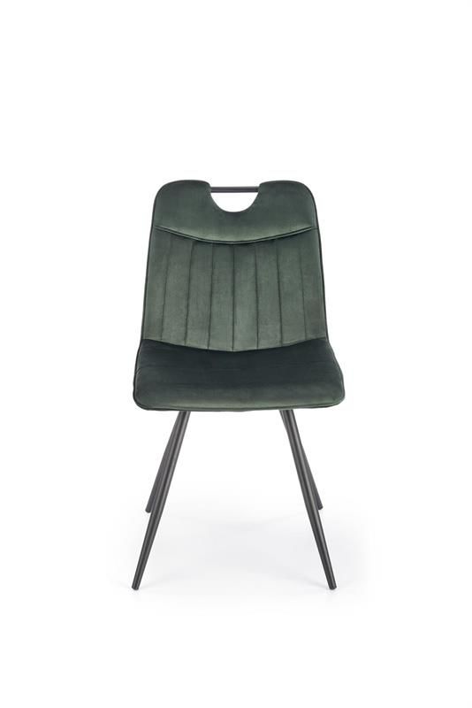 Jídelní židle K521 - je elegantní židle vyrobena v kombinaci lakované oceli a sedáku vyrobeného v tmavě zelené, šedé, černé a hořčicové látce.