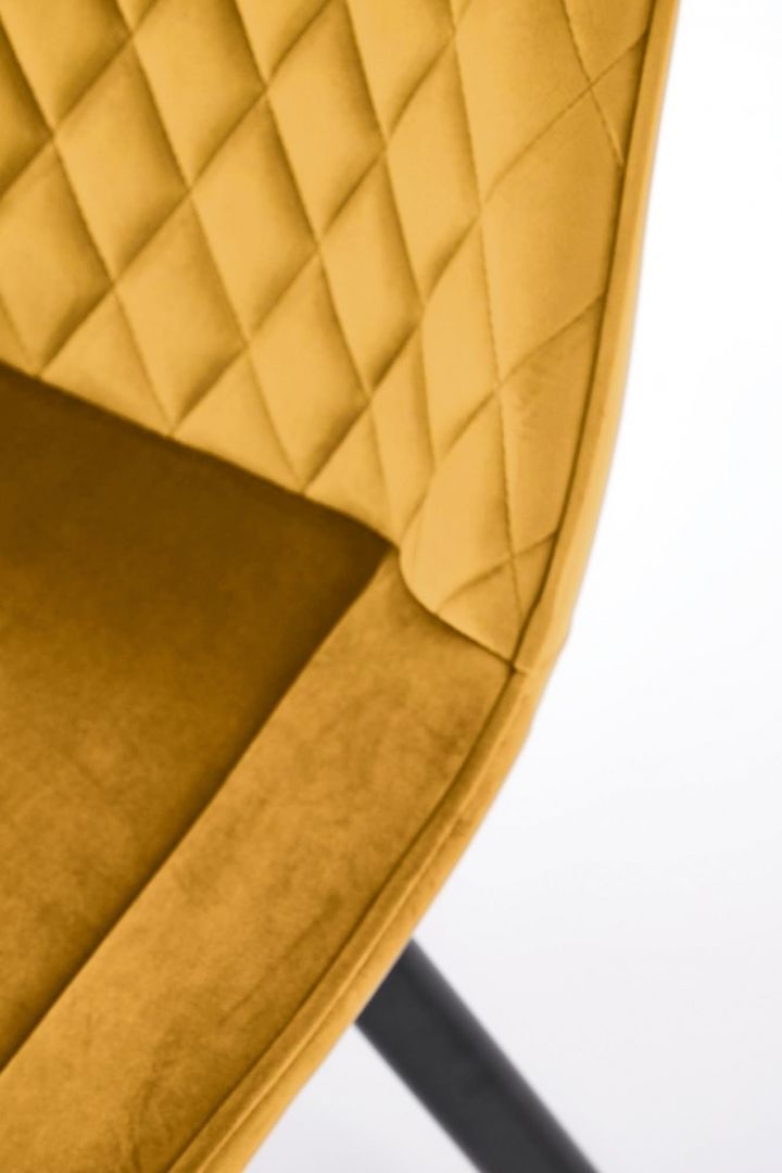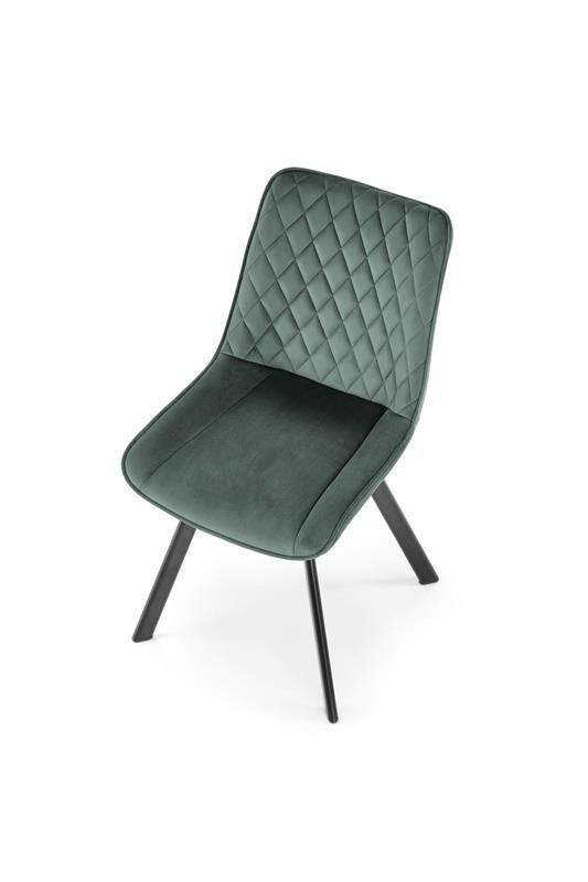 Jídelní židle K520 - je elegantní otočná židle vyrobena v kombinaci lakované oceli a sedáku vyrobeného v tmavě zelené, šedé, béžové, skořicové, hořčicově žluté, královsky modré a černé sametové látce BLUVEL.