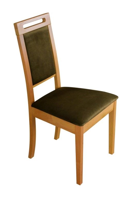 Jídelní židle ROMAN XV. - je velmi pohodlná polstrovaná židle, která vyniká nejen designem, ale také komfortem sezení. Máte možnost si vybírat z mnoha odstínů moření a vzorů látek.
