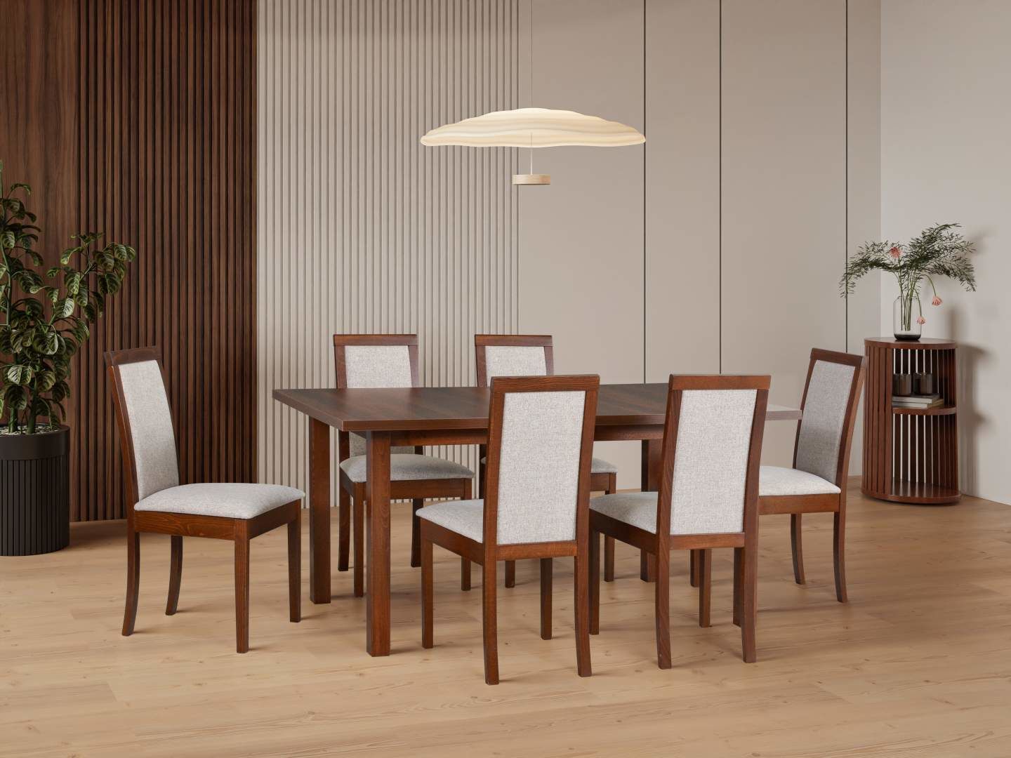 Jídelní židle ROMAN IV. - je velmi pohodlná polstrovaná židle, která vyniká nejen designem, ale také komfortem sezení. Máte možnost si vybírat z mnoha odstínů moření a vzorů látek.
