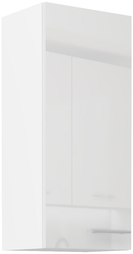 Horní skříňka ze systému LARA WHITE - skříňka do kuchyňské linky je vybavena dvířky s širokým kovovým úchytem. Dvířka skříněk jsou vyrobeny v bílém lesklém provedení v kombinaci s bílým korpusem.