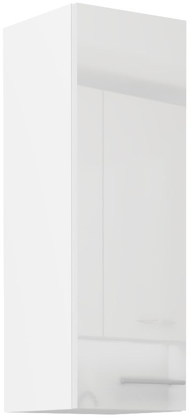 Horní skříňka ze systému LARA WHITE - skříňka do kuchyňské linky je vybavena dvířky s širokým kovovým úchytem. Dvířka skříněk jsou vyrobeny v bílém lesklém provedení v kombinaci s bílým korpusem.