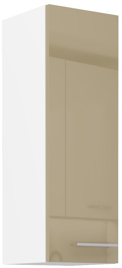 Horní skříňka ze systému LARA CAPPUCINO - skříňka do kuchyňské linky je vybavena dvířky s širokým kovovým úchytem. Dvířka skříněk jsou vyrobeny v cappucino lesklém provedení v kombinaci s bílým korpusem.