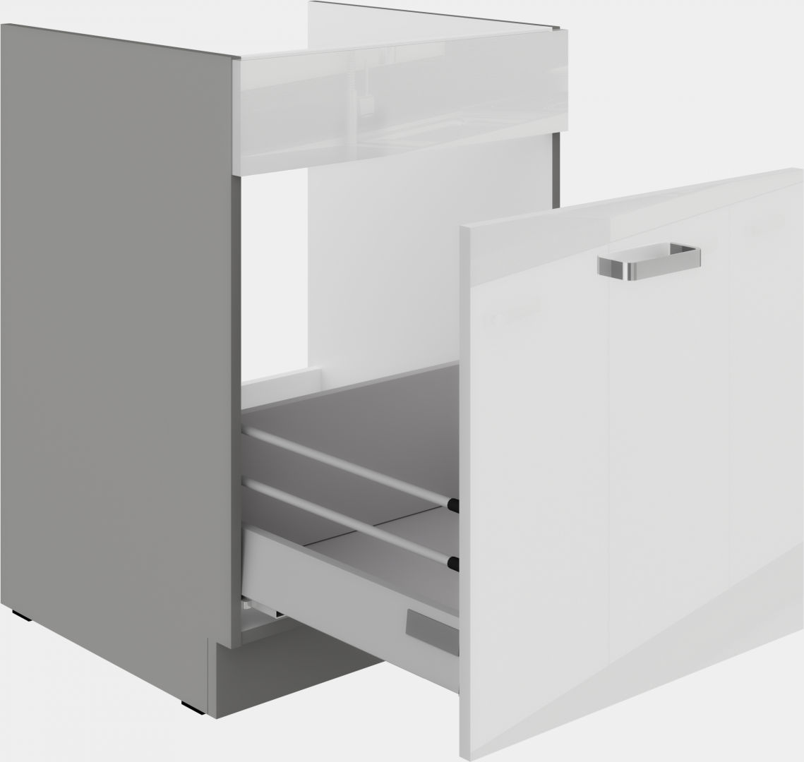 Spodní dřezová skříňka ze systému BIANCA - dřezová skříňka do kuchyňské linky je uzavíratelná praktickým šuplíkem se širokým úchytem. Dvířka skříněk jsou provedené v moderním bílém lesku.