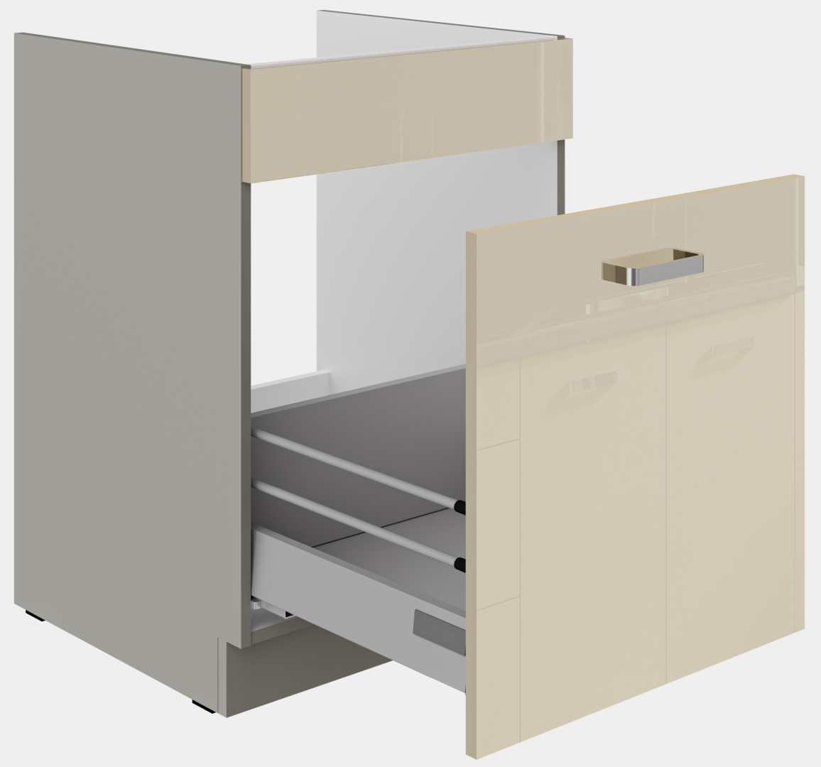 Spodní dřezová skříňka ze systému CARMEN - dřezová skříňka do kuchyňské linky je uzavíratelná praktickým šuplíkem se širokým úchytem. Dvířka skříněk jsou provedené v moderním krémovém lesku.