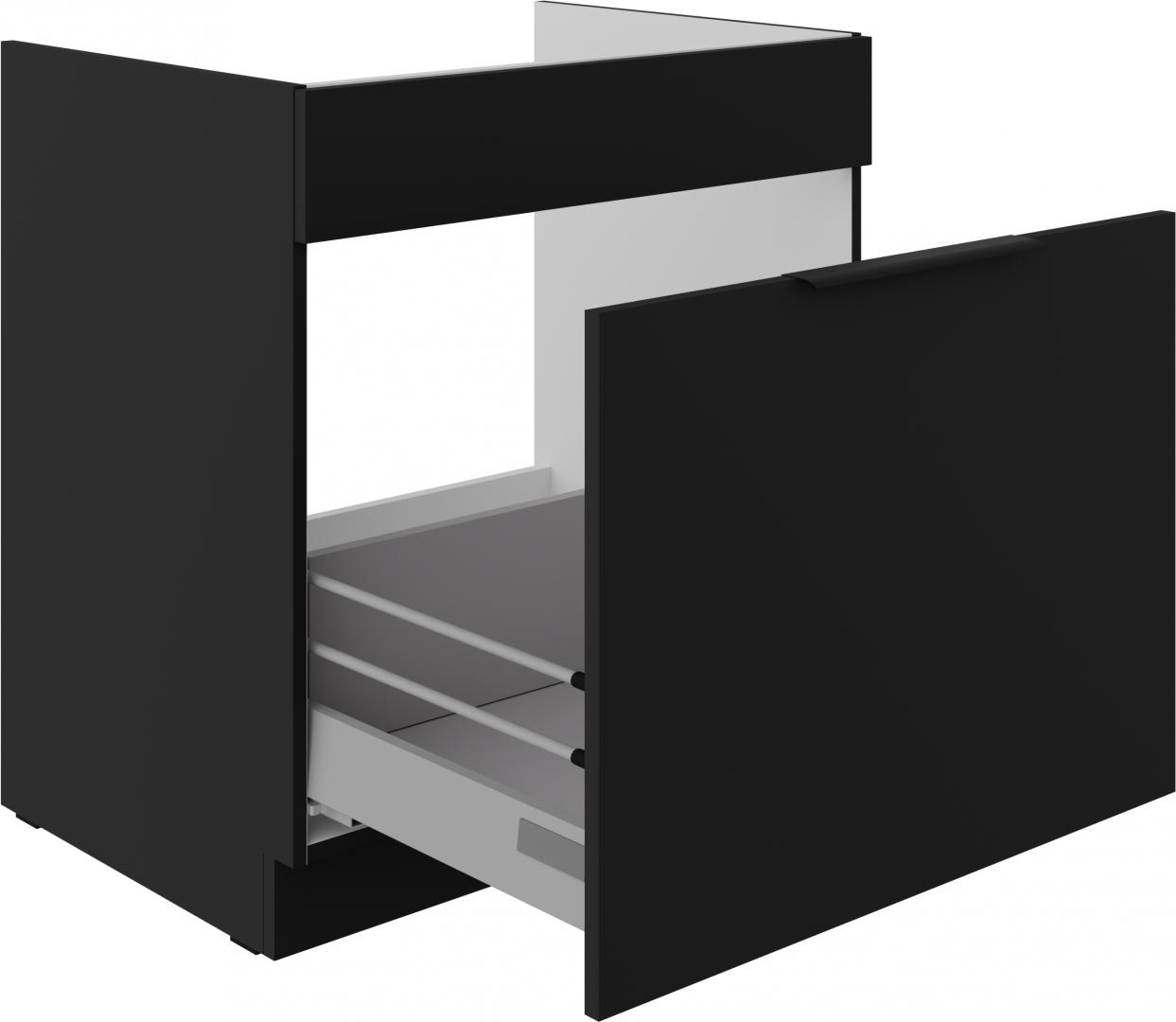 Spodní dřezová skříňka s šuplíkem na koš ze systému SIENA - dřezová skříňka do kuchyňské linky je uzavíratelná praktickým šuplíkem s možností vložení odpadkového koše a s širokým kovovým úchytem. Šuplík skříňky je vyroben v dekoru černá.