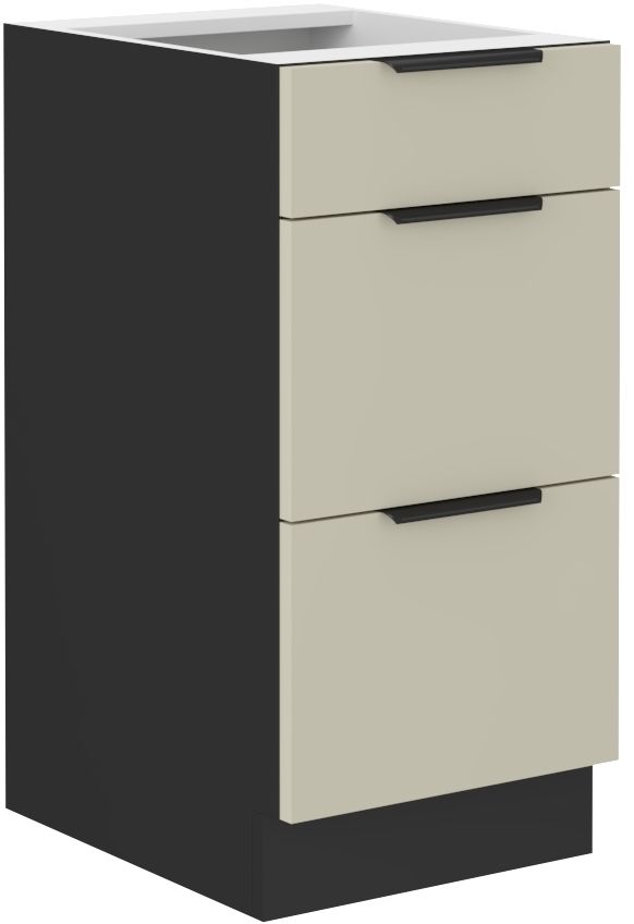 Spodní zásuvková skříňka ze systému ARONA - zásuvková skříňka do kuchyňské linky je uzavíratelná praktickými šuplíky s širokými kovovými úchyty. Šuplíky skříňky jsou vyrobeny v dekoru Kašmír.