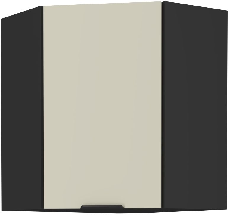 Horní skříňka ze systému ARONA - rohová skříňka do kuchyňské linky je vybavena dvířky s širokým kovovým úchytem. Dvířka skříněk jsou vyrobeny v dekoru Kašmír.