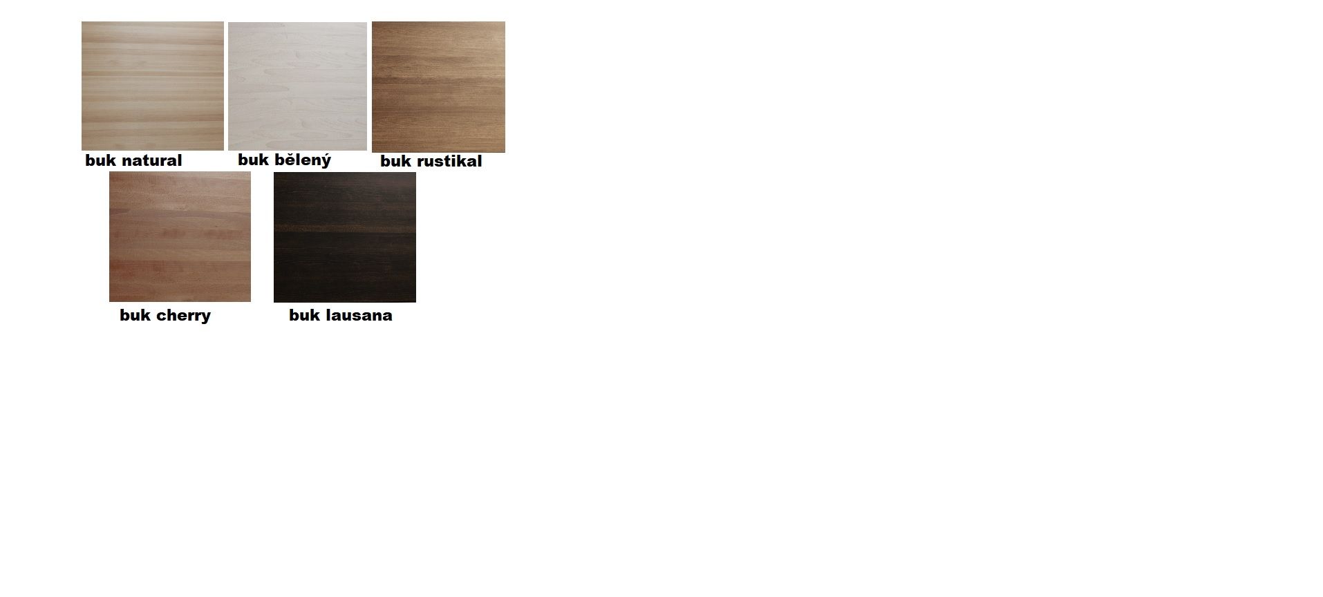 Barevné odstíny za příplatek +10% : buk bělený, buk lausane, buk rustikal, buk cherry