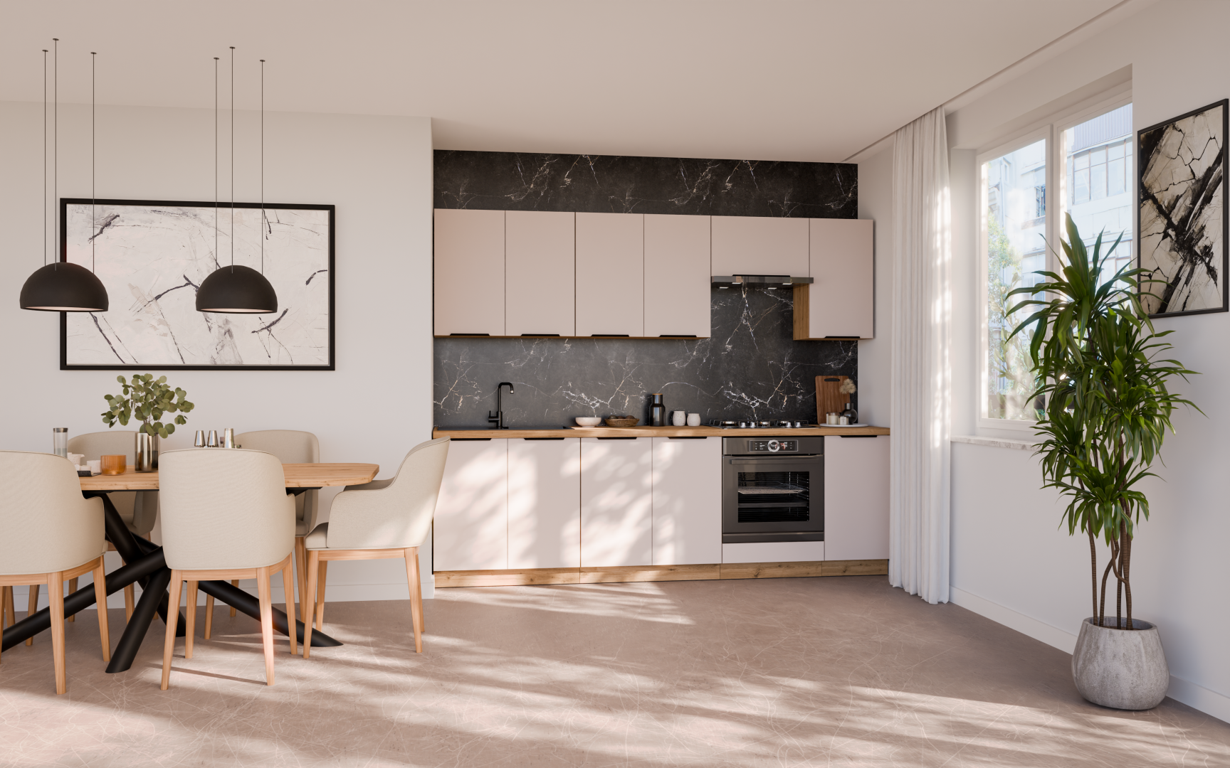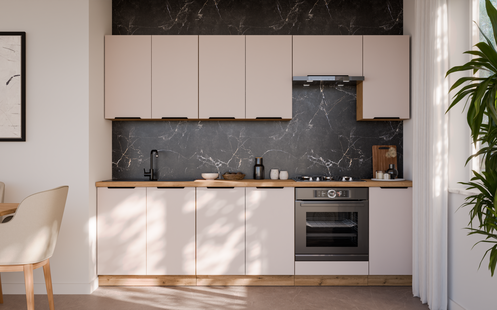 Kuchyňská linka SOLEA - vaření je radost, zábava a společné vzpomínky. Kvalitní kuchyňská linka s dvířky v dekoru Kašmír vám zpříjemní chvilky strávené ve vaší kuchyni. Velikost kuchyňské linky lze sestavit 180,200, 260 a nebo vlastní sestavu.