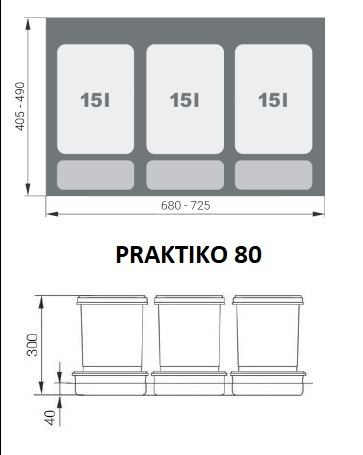 Možnost objednání S nebo BEZ odpadkových košů PRAKTIKO 80 pod dřezovou skříňku (viz. foto)