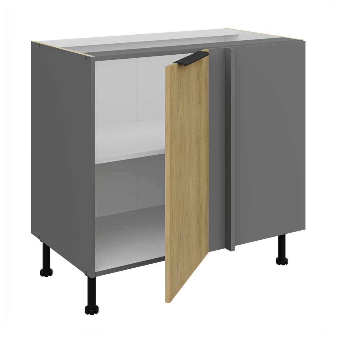 Spodní rohová skříňka ze systému CREMONA ANTRACIT - skříňka do kuchyňské linky je vybavena dvířky s širokým kovovým úchytem. Dvířka skříněk jsou vyrobeny v dekoru dub Cremona.