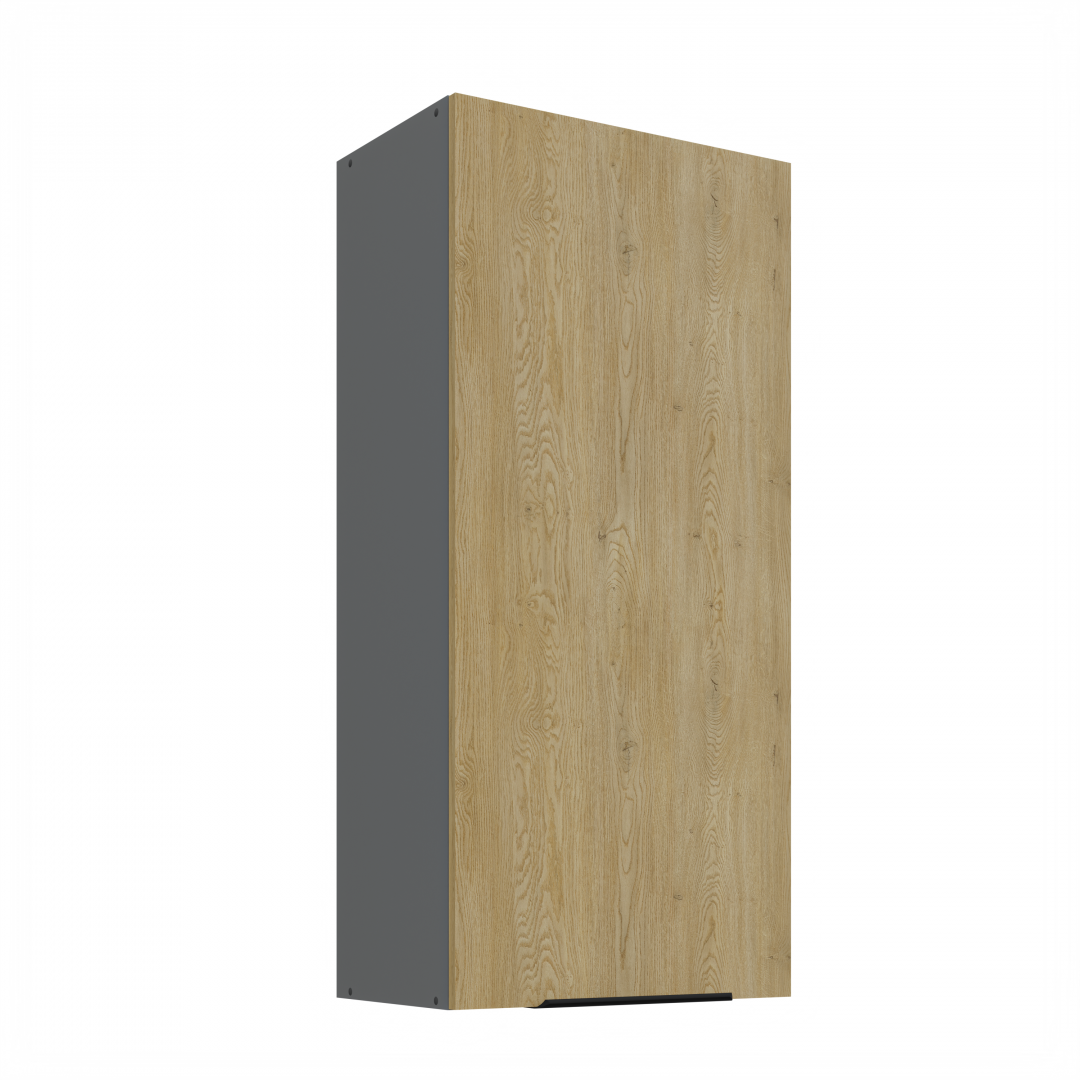 Horní otevírací skříňka ze systému CREMONA ANTRACIT - skříňka do kuchyňské linky je uzavíratelná praktickými dvířky se širokými úchyty. Dvířka skříněk jsou provedené v dekoru dub Cremona.