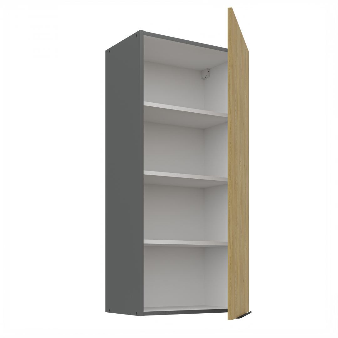 Horní skříňka do kuchyně ze sektorového systému CREMONA ANTRACIT o rozměru 50 x 31 x 108 cm. Kvalitní a praktické kuchyňské skříňky jsou vhodné do každé kuchyně a dokonale využijí každý část prostoru. Kuchyňské skříňky pro kuchyňskou linku bychom mohli rozdělit na tři základní typy skříněk: spodní kuchyňské skříňky, horní kuchyňské skříňky a rohové kuchyňské skříňky. Správnou kombinací těchto typů skříněk si dokážete vytvořit kuchyň podle vašich představ. Skříňka obsahuje tři police. Dvířka jsou osazena panty s tichým dovíráním.