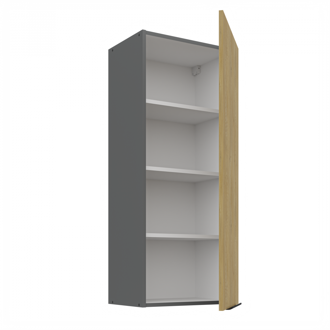 Horní otevírací skříňka ze systému CREMONA ANTRACIT - skříňka do kuchyňské linky je uzavíratelná praktickými dvířky se širokými úchyty. Dvířka skříněk jsou provedené v dekoru dub Cremona.
