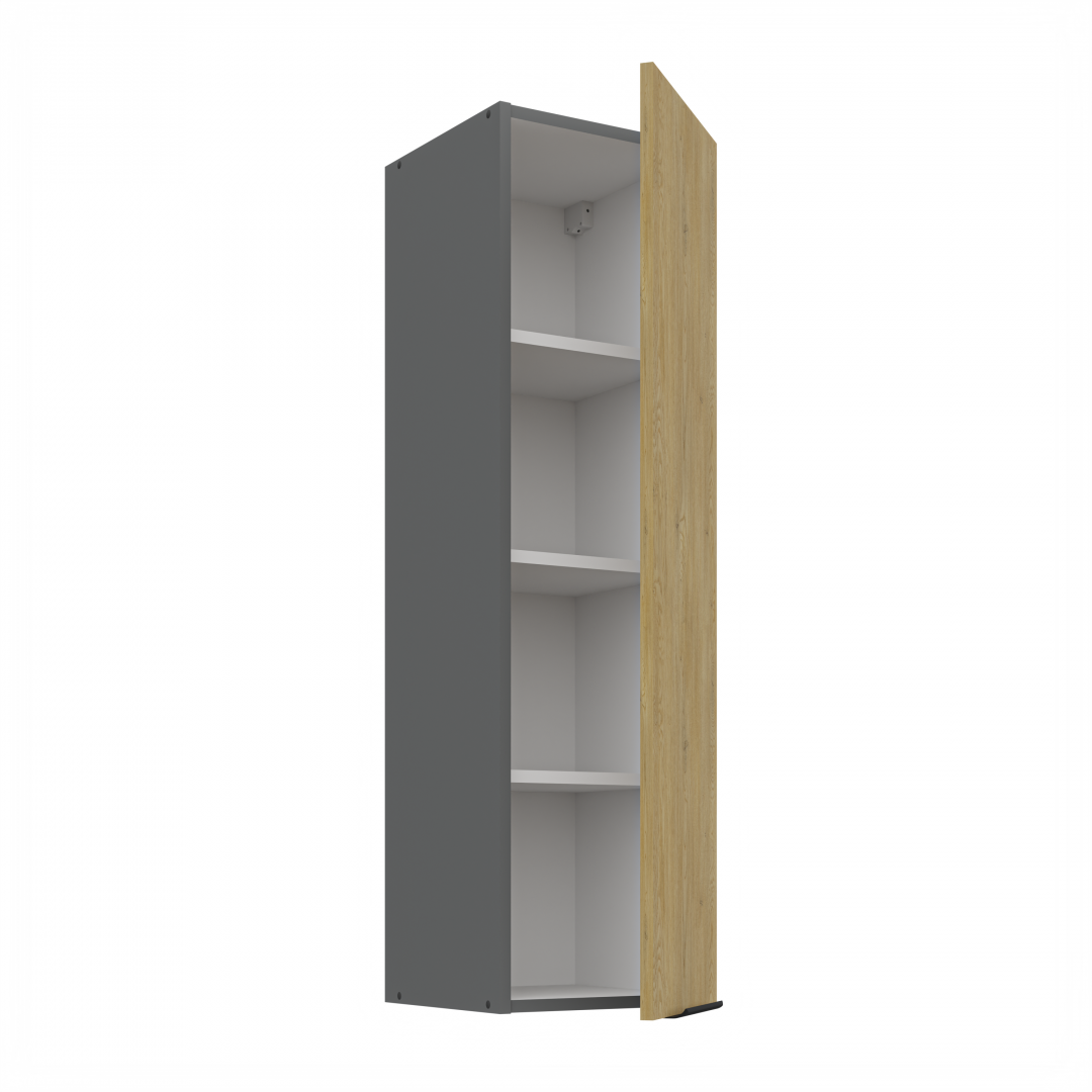 Horní skříňka do kuchyně ze sektorového systému CREMONA ANTRACIT o rozměru 30 x 31 x 108 cm. Kvalitní a praktické kuchyňské skříňky jsou vhodné do každé kuchyně a dokonale využijí každý část prostoru. Kuchyňské skříňky pro kuchyňskou linku bychom mohli rozdělit na tři základní typy skříněk: spodní kuchyňské skříňky, horní kuchyňské skříňky a rohové kuchyňské skříňky. Správnou kombinací těchto typů skříněk si dokážete vytvořit kuchyň podle vašich představ. Skříňka obsahuje tři police. Dvířka jsou osazena panty s tichým dovíráním.