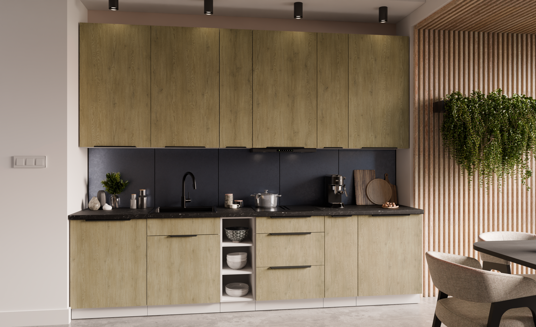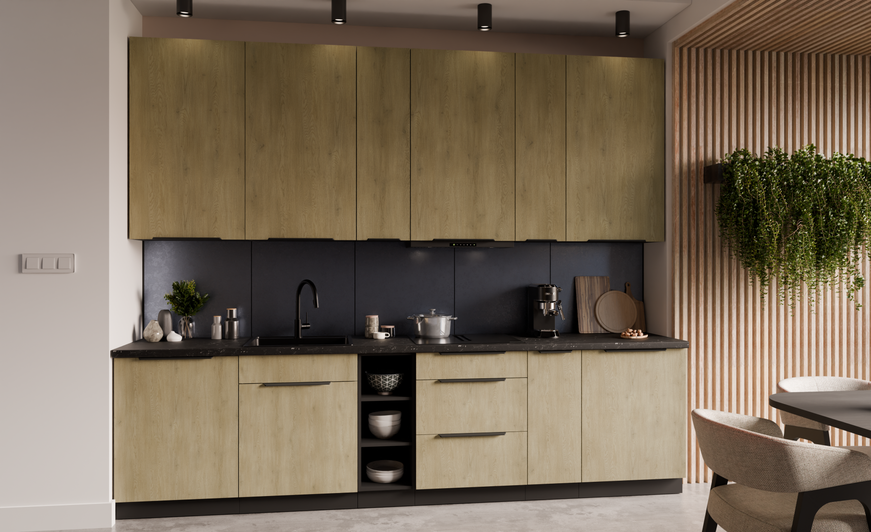 Kuchyňská linka CREMONA - vaření je radost, zábava a společné vzpomínky. Kvalitní kuchyňská linka s dvířky v dekoru dub Cremona vám zpříjemní chvilky strávené ve vaší kuchyni. Velikost kuchyňské linky lze sestavit 180,200, 260 a nebo vlastní sestavu.