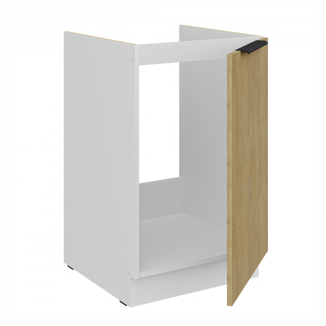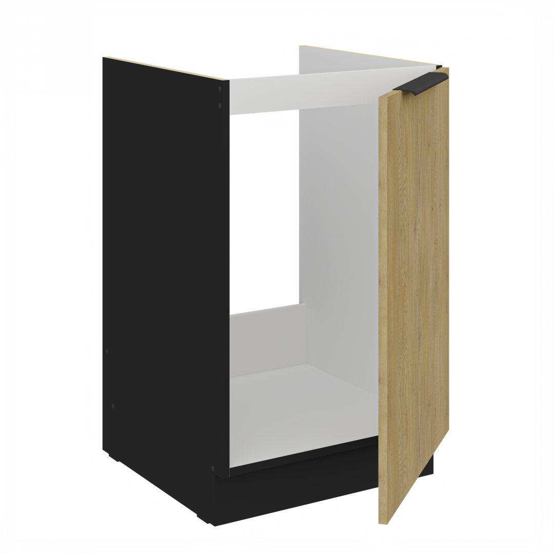Spodní dřezová skříňka ze systému CREMONA - dřezová skříňka do kuchyňské linky je uzavíratelná praktickými dvířky se širokými kovovými úchyty. Dvířka skříněk jsou vyrobeny v dekoru dub Cremona a u korpusu je na výběr dekor bílý nebo černý.