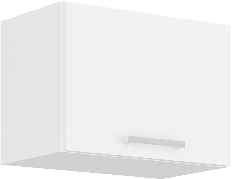 Skříňka pro digestoř ze systému EKO VHITE - skříňka do kuchyňské linky s praktickými výklopnými dvířky se širokým úchytem. Dvířka skříněk jsou provedené v dekoru bílý mat. Dvířka skříňky se otevírají pomocí plynových pístů.