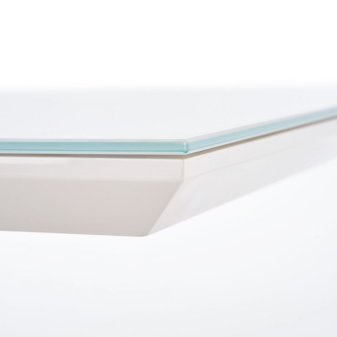 sklo / lakovaná MDF / laminovaná MDF / chromovaná / nerezová ocel