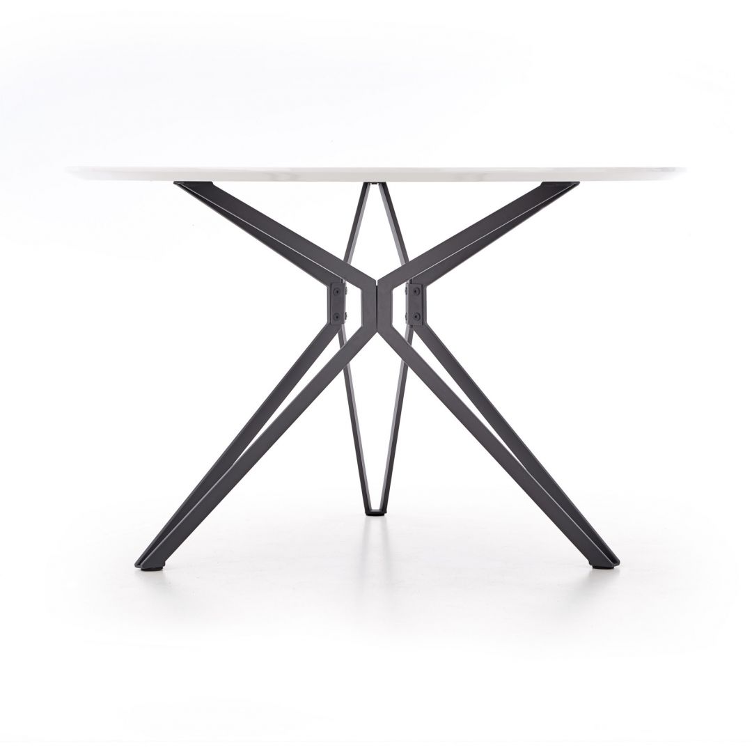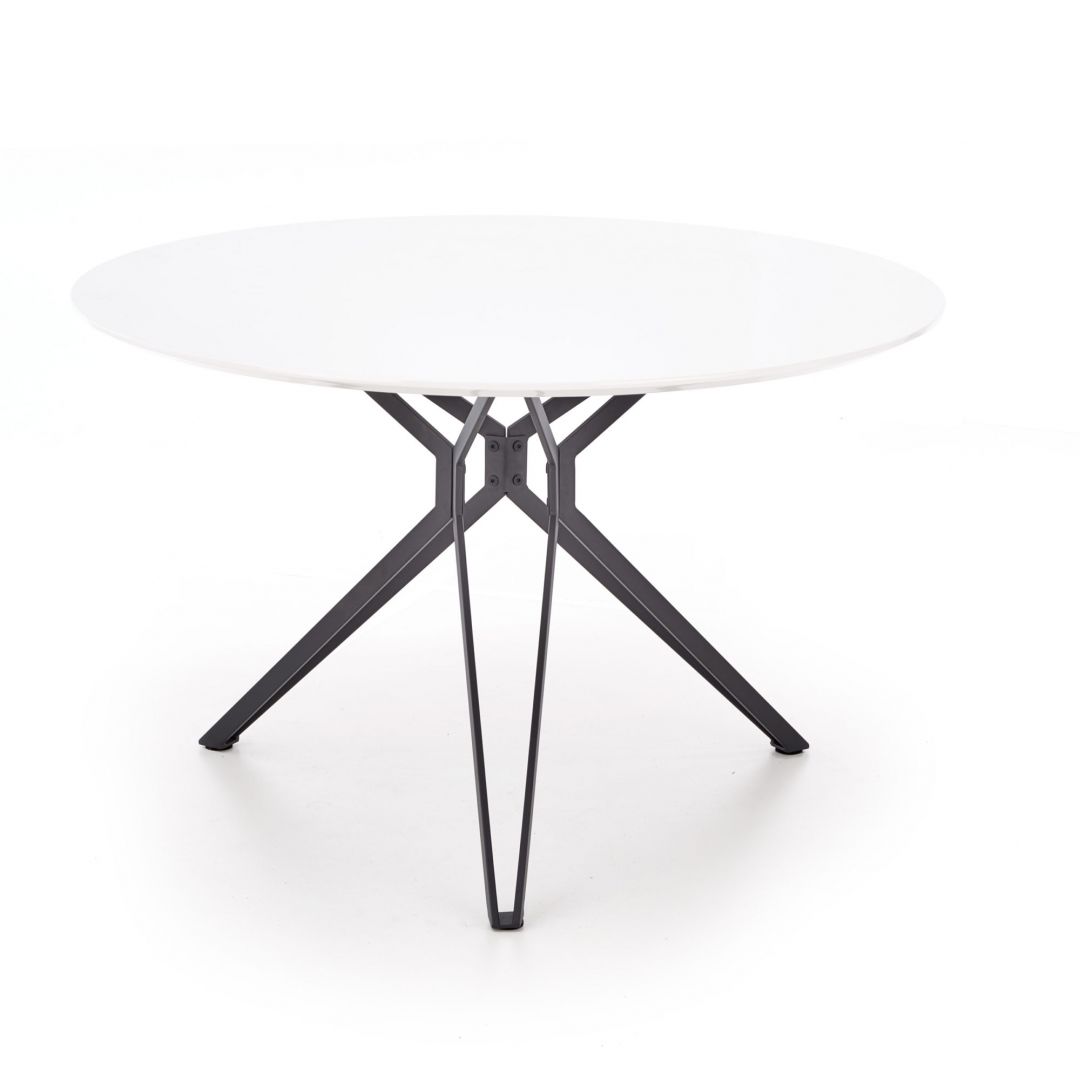 Jídelní stůl PIXEL - je kulatý jídelní stůl vyrobený v bílé lakované MDF desky a designové podnože z černé lakované oceli. Stůl je vhodný do kuchyně nebo jídelny.