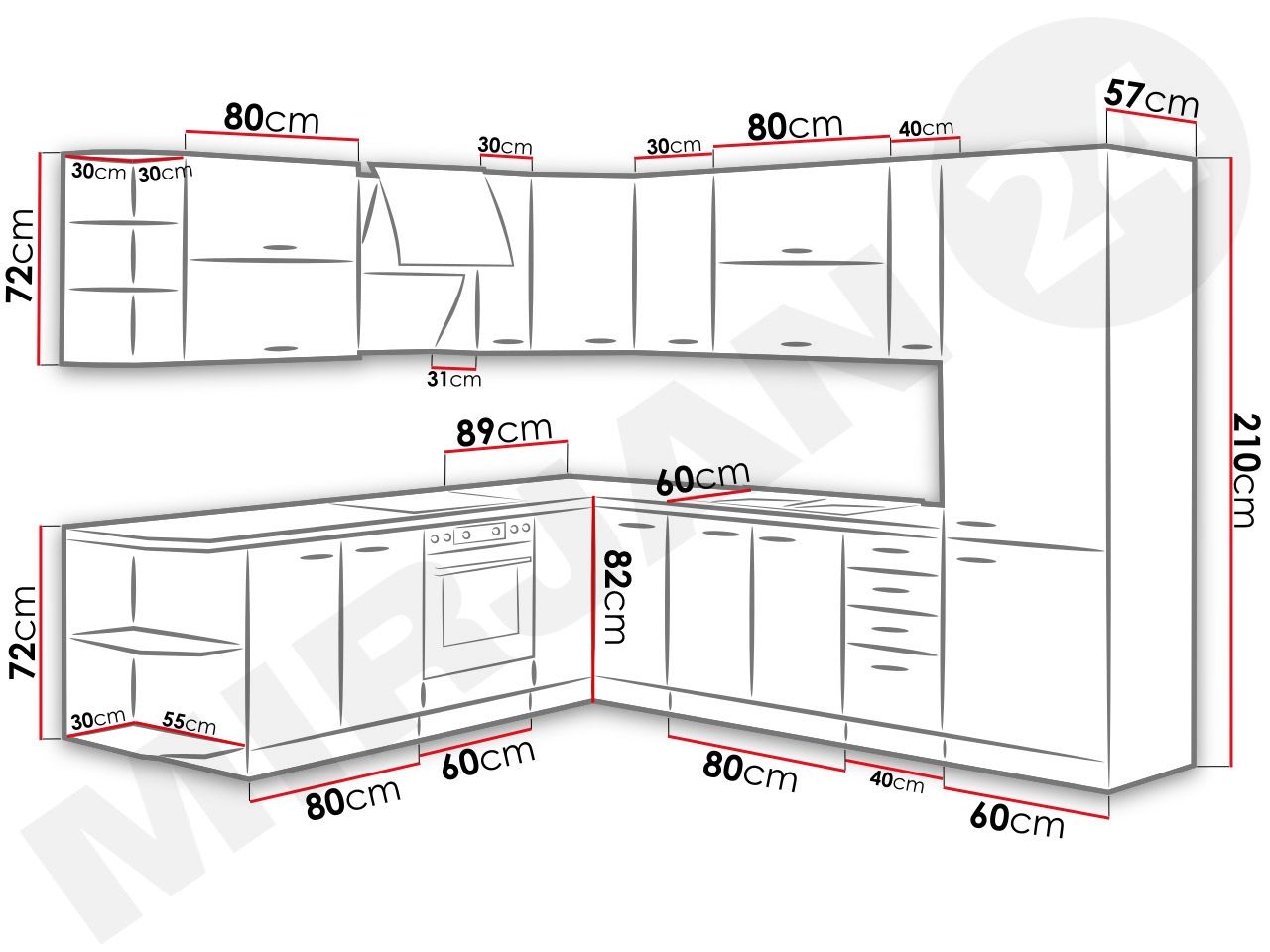 Skříňky kuchyňského systému jsou variabilní a můžete si je tak poskládat stejně jako na fotografiích nebo jakkoliv jinak dle vašich rozměrů, které máte v kuchyni k dispozici.