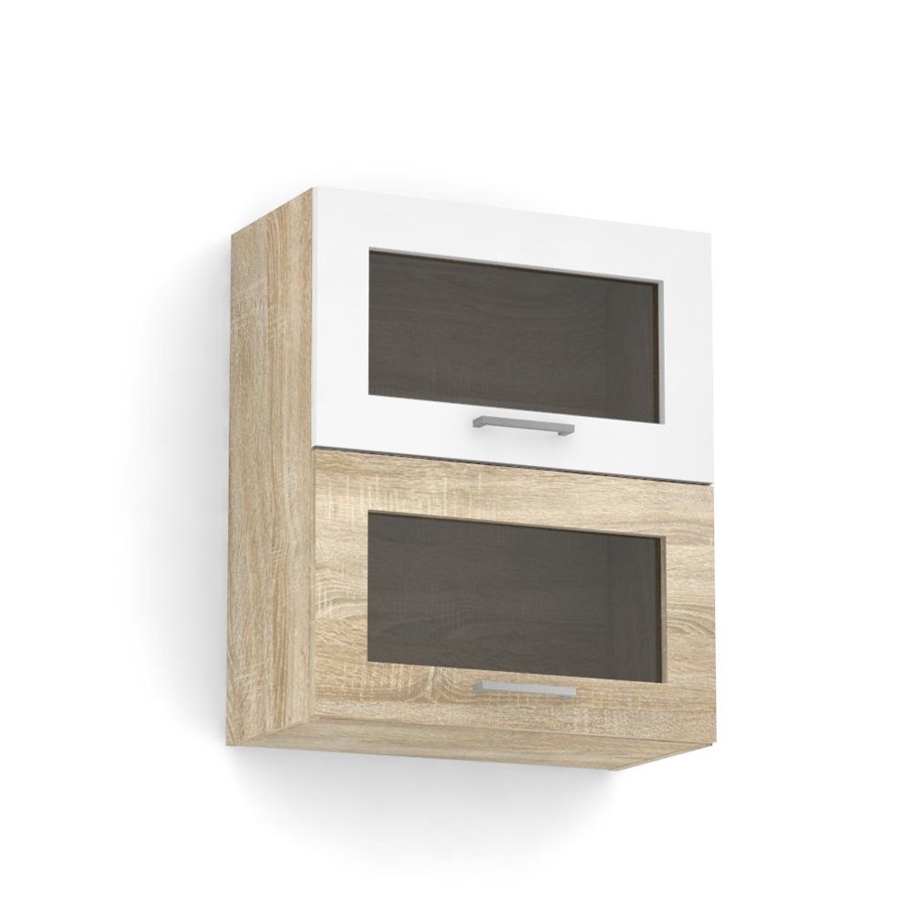 Horní kuchyňské skříňky jsou vyrobeny z kvalitní laminované DTD desky. Skříňka do kuchyně je uzavíratelná praktickými dvířky se širokými kovovými úchyty ve spodní části dvířek. Dvířka jsou výklopná a lze vybírat ze dvou variant, plná nebo prosklenná, viz varianty produktu.