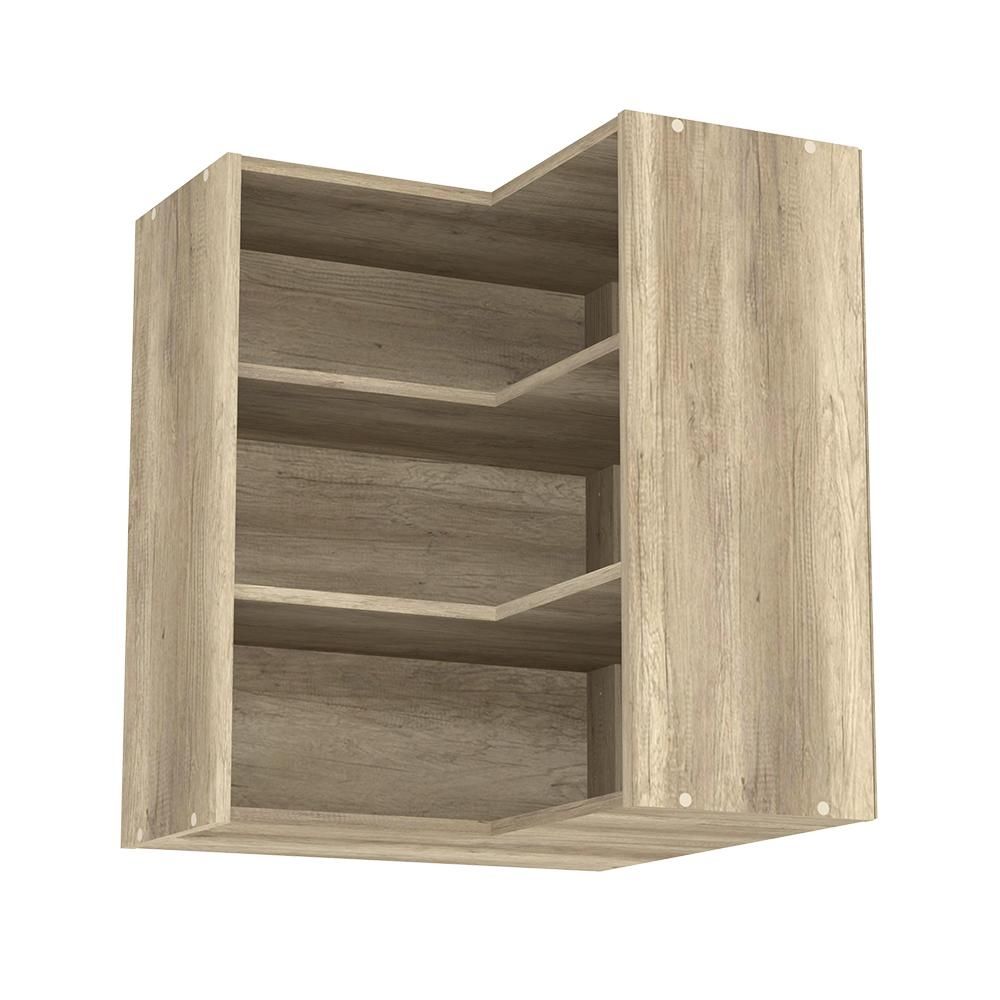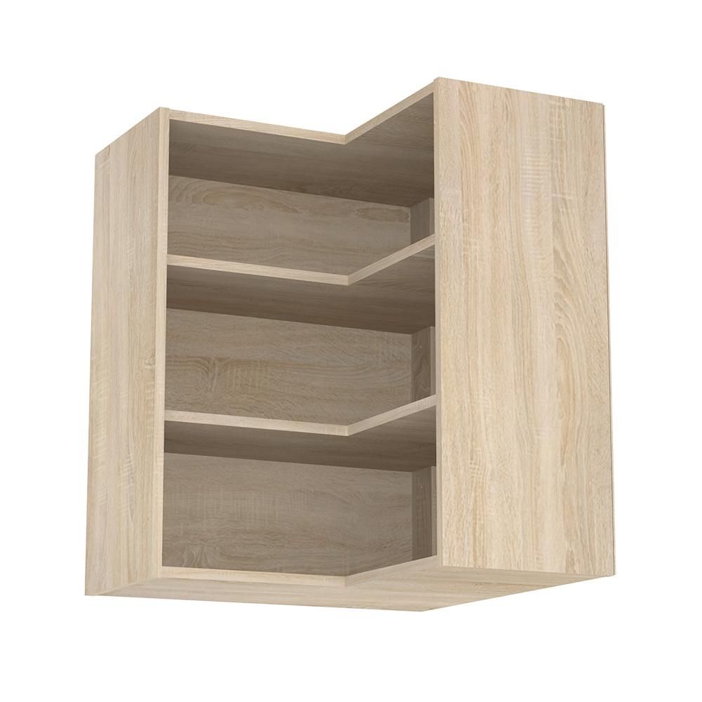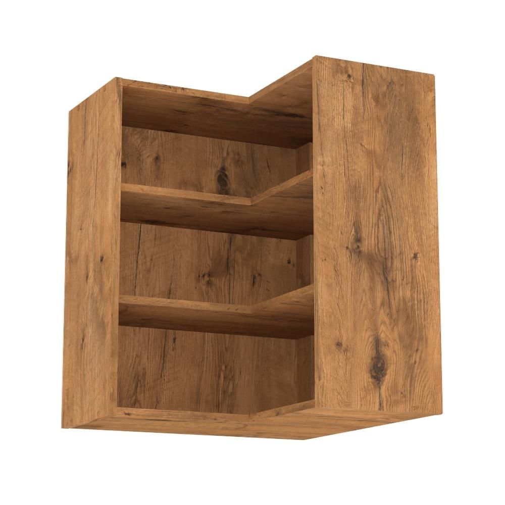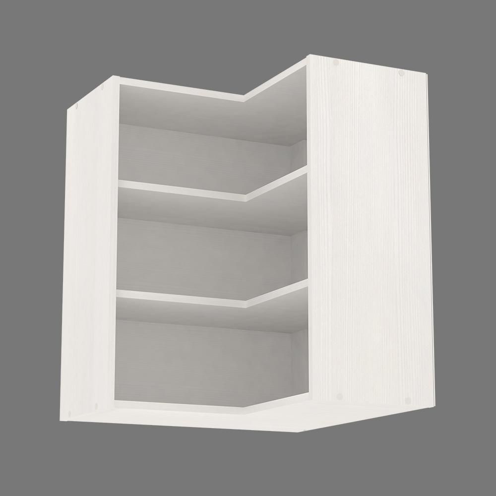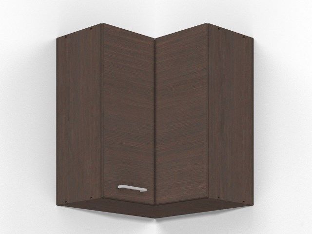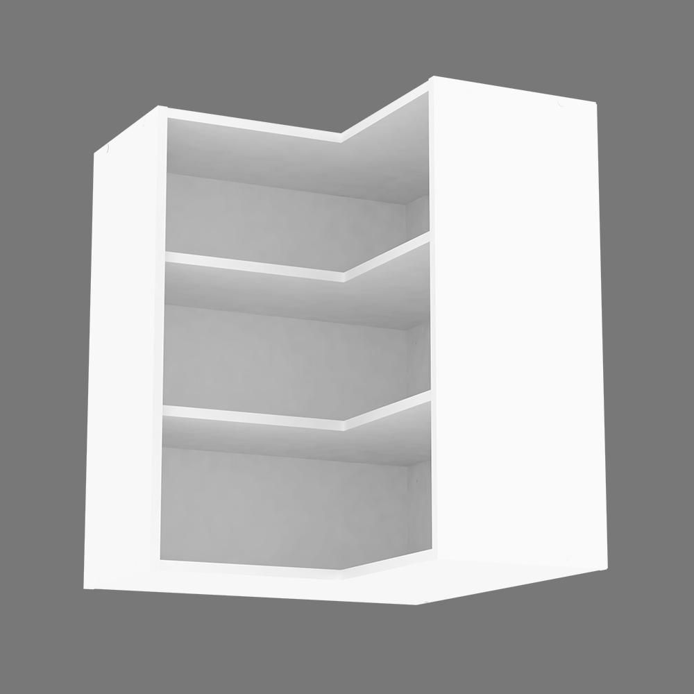 Horní rohová skříňka ze systému REA ALFA . Možnost kombinace dekorů bílá, dub bardolino, wenge, buk, navarra, ořech rockpile, dub canyon, lancelot, zelená, graphite, rose, plum, ice blue, pow blue, dub vicenza a cappuccino.