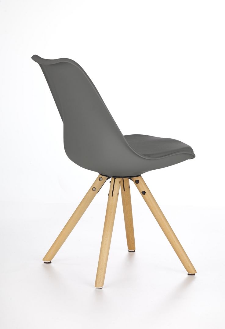 Jídelní židle K201 - je stylová pohodlná židle v retro designu vyrobena v kombinaci masivního dřeva v barvě buku, sklolaminátu a ekokůže v černé a šedé barvě.