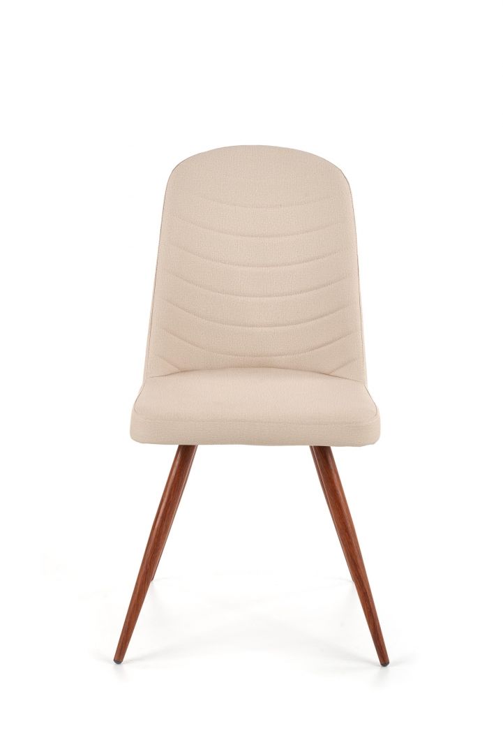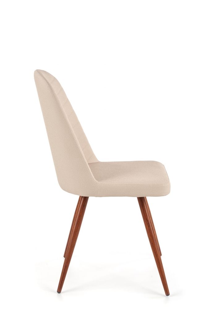 Jídelní židle K 214 - je elegantní židle vyrobena v kombinaci lakované oceli v odstínu medový dub a pohodlného sedáku v krémové barvě.