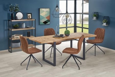 Jídelní židle K 237 - je elegantní židle vyrobena v kombinaci lakované oceli v černé barvě a pohodlného sedáku a opěráku čalouněným v hnědé látce.