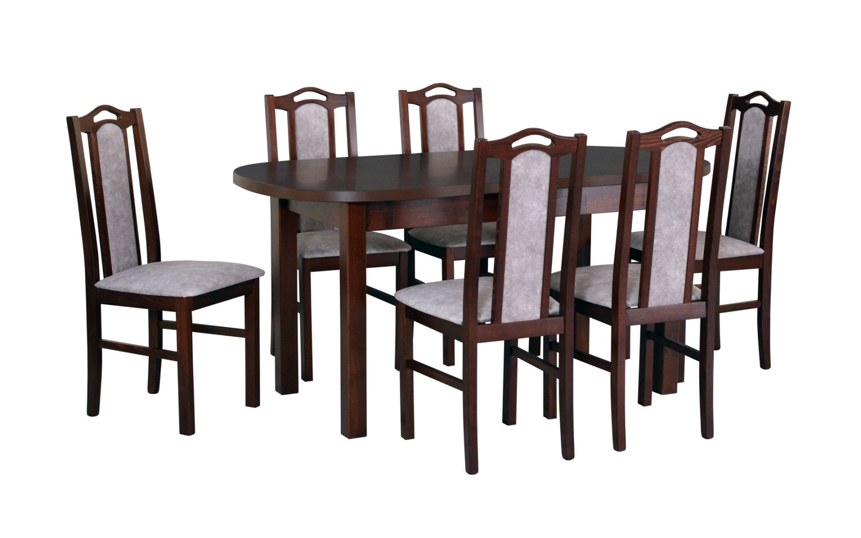 Jídelní set DX 16 - set zahrnuje rozkládací jídelní stůl a šest polstrovaných židlí z masivu buku. Dopřejte si stolování s Vaší rodinou u kvalitního jídelního stolu a na komfortních židlích. Barevné provedení stolu a židlí lze vybírat z několika moderních barevných dekorů dřeva.