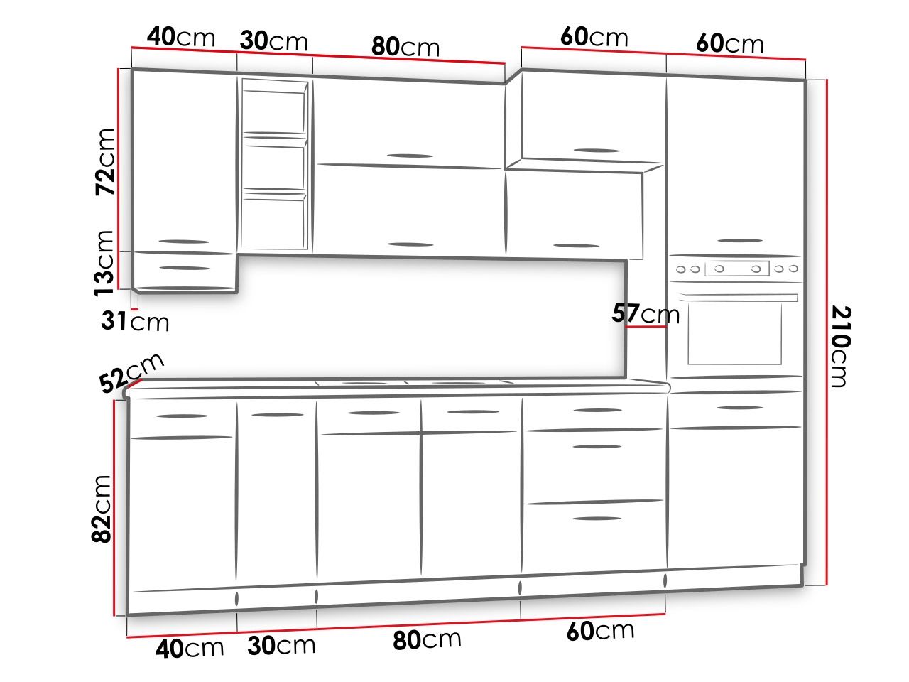 Skříňky kuchyňského systému jsou variabilní a můžete si je tak poskládat stejně jako na fotografiích nebo jakkoliv jinak dle vašich rozměrů, které máte v kuchyni k dispozici.