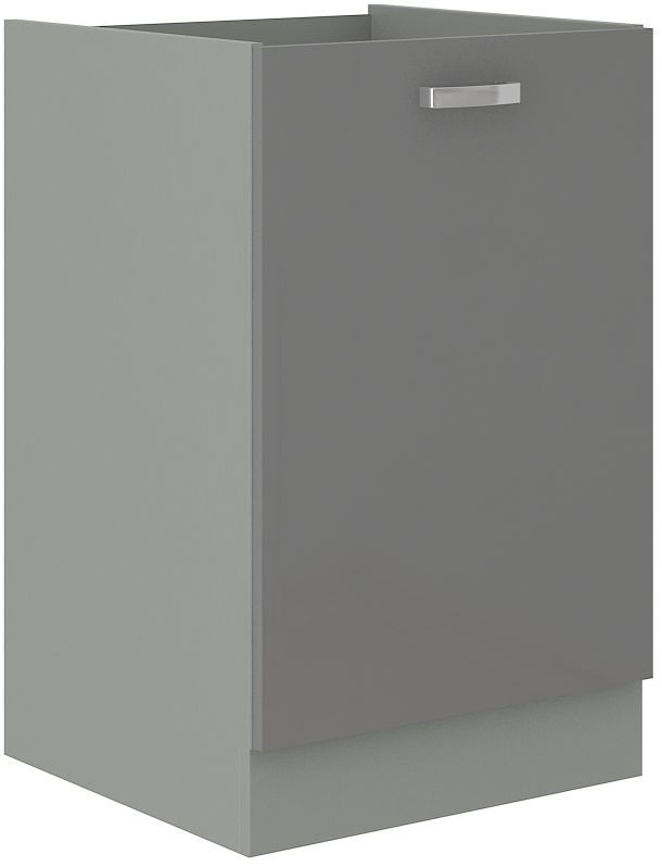 Spodní otevírací skříňka ze systému GERI - skříňka do kuchyňské linky je uzavíratelná praktickými dvířky se širokým úchytem. Dvířka skříněk jsou provedené v moderním šedém lesku. Dvířka skříňky mají tichý doraz.