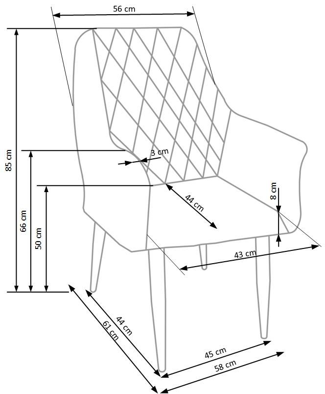 Jídelní židle K 287 - je elegantní židle vyrobena v kombinaci lakované oceli a pohodlného sedáku čalouněného ekokůži v béžovém, šedém barevném provedení.