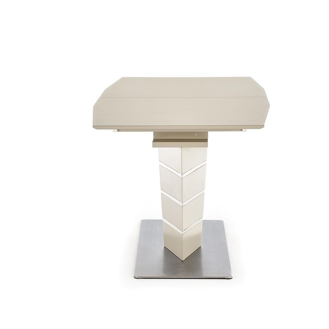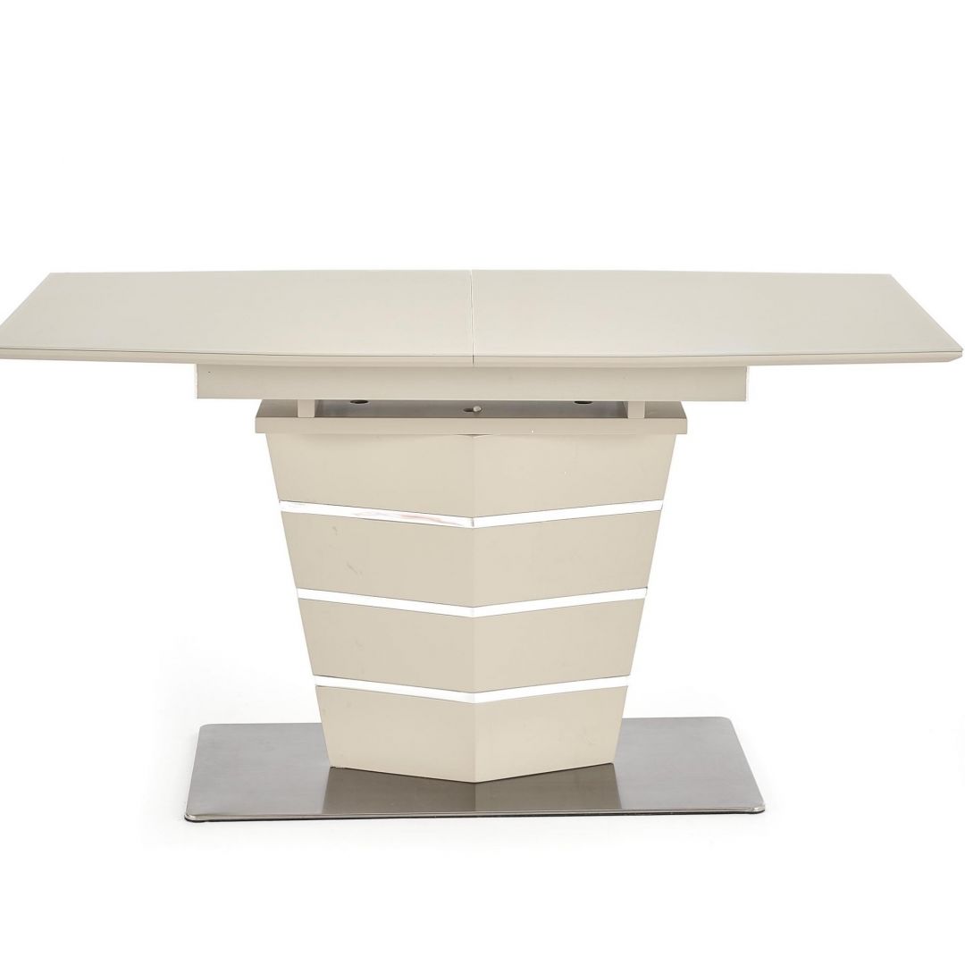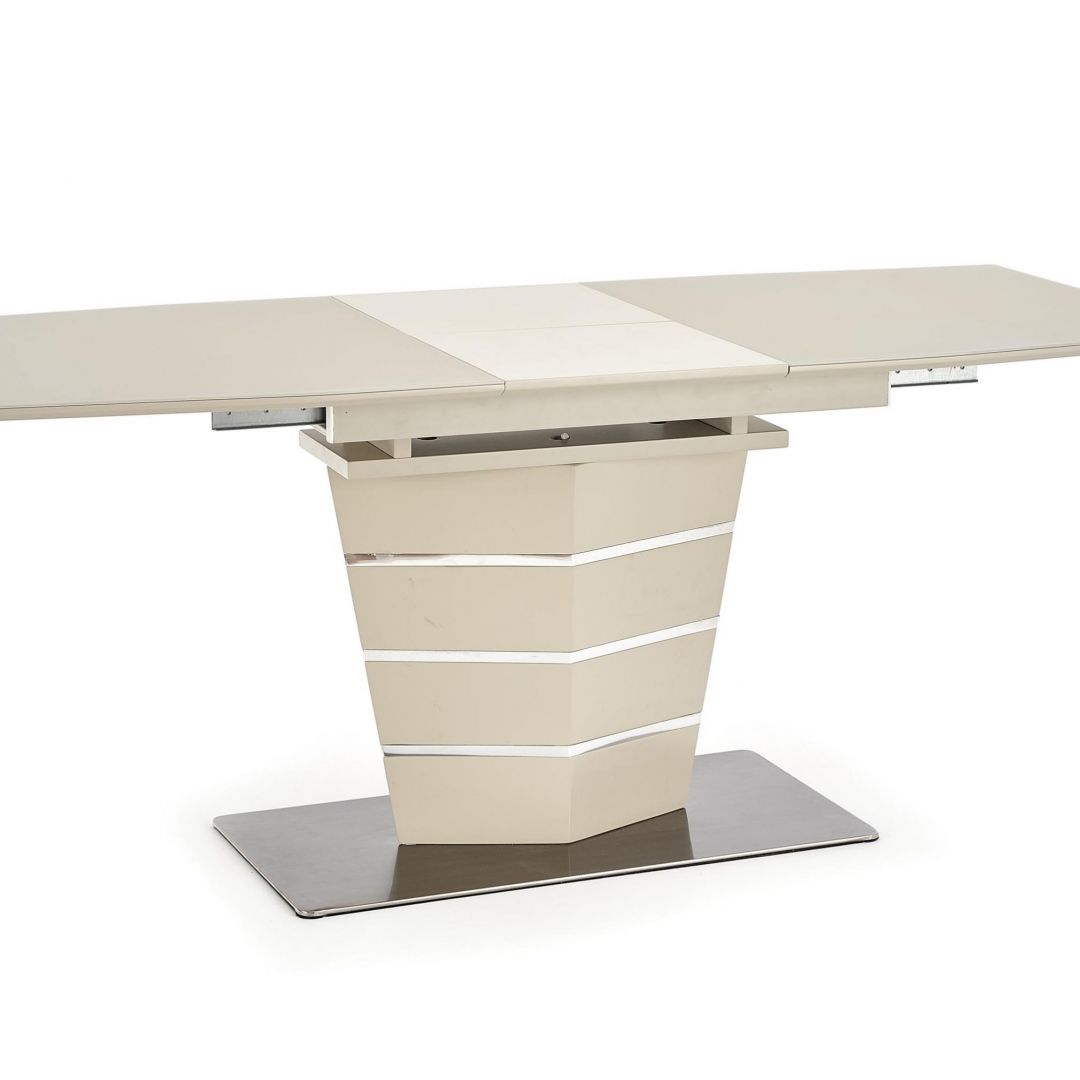 Jídelní stůl SORENTO - je stylový rozkládací jídelní stůl na elegantní podnoži. Stůl je vyrobený z matné MDF v dekoru champagne, nerezové oceli a sklem průhledné barvy.